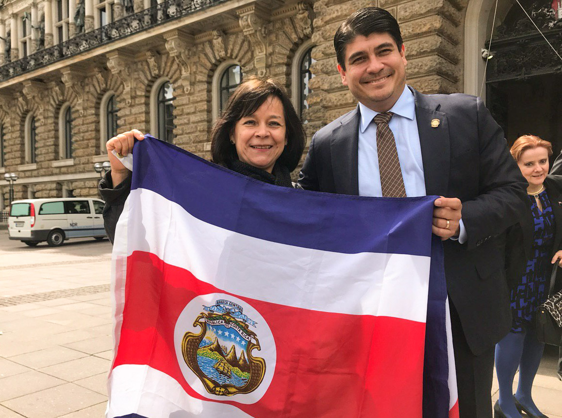 Posteriormente, el mandatario ingresó a la alcaldía de Hamburgo, donde consignó en el libro de visitas: “A la gente de Hamburgo con admiración por su visión de mundo, compromiso con la diversidad, el ambiente, el comercio y con un mundo mejor. Con afecto y amistad, Carlos Alvarado Quesada”.