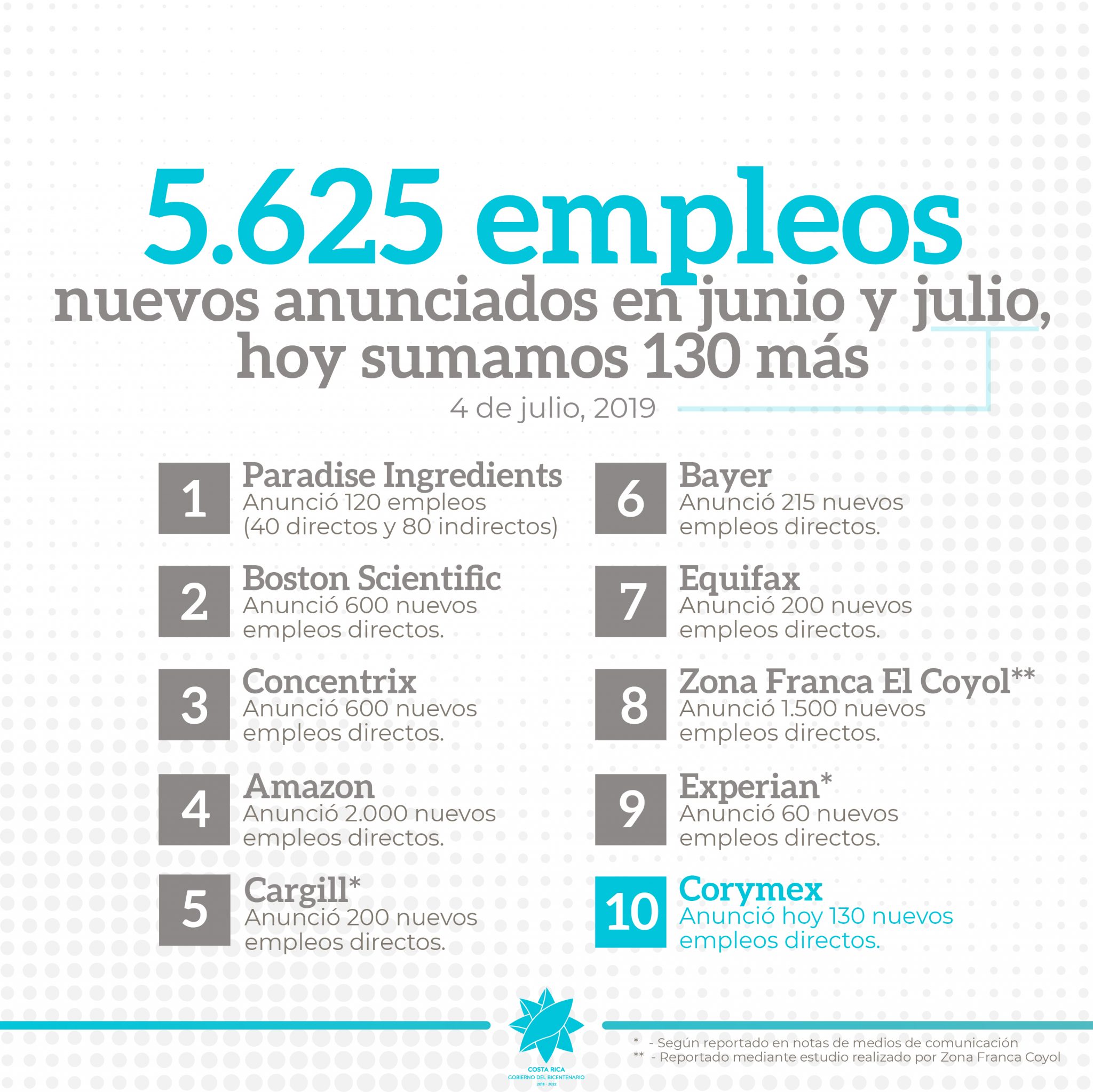 - Zona Franca El Coyol: 1.500 empleos directos.