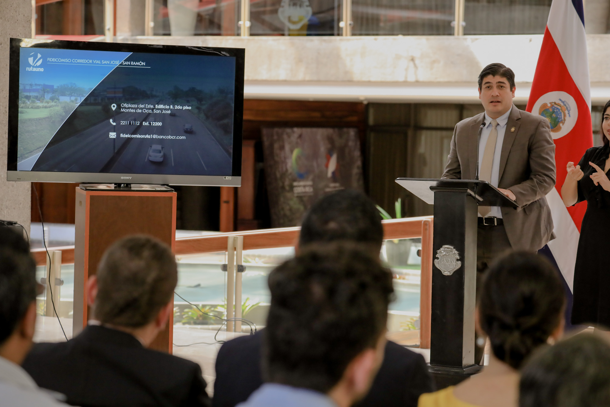“Como nos comprometimos a mediados del año anterior, seguimos avanzando en la ejecución de las grandes obras de infraestructura de nuestro país, en este caso, el inicio de la contratación de importantes mejoras en el corredor vial San José-San Ramón”, declaró el Presidente Alvarado.